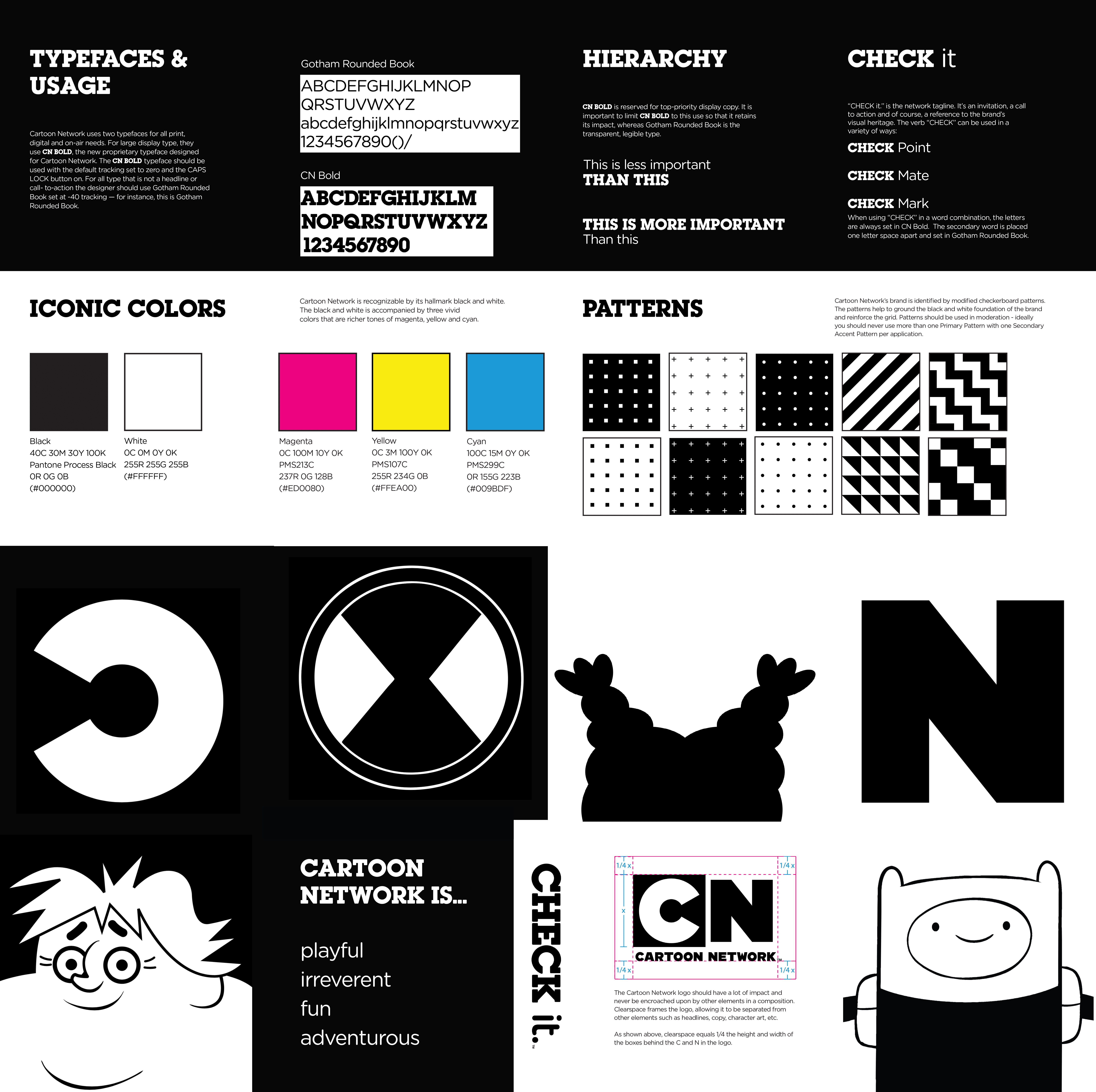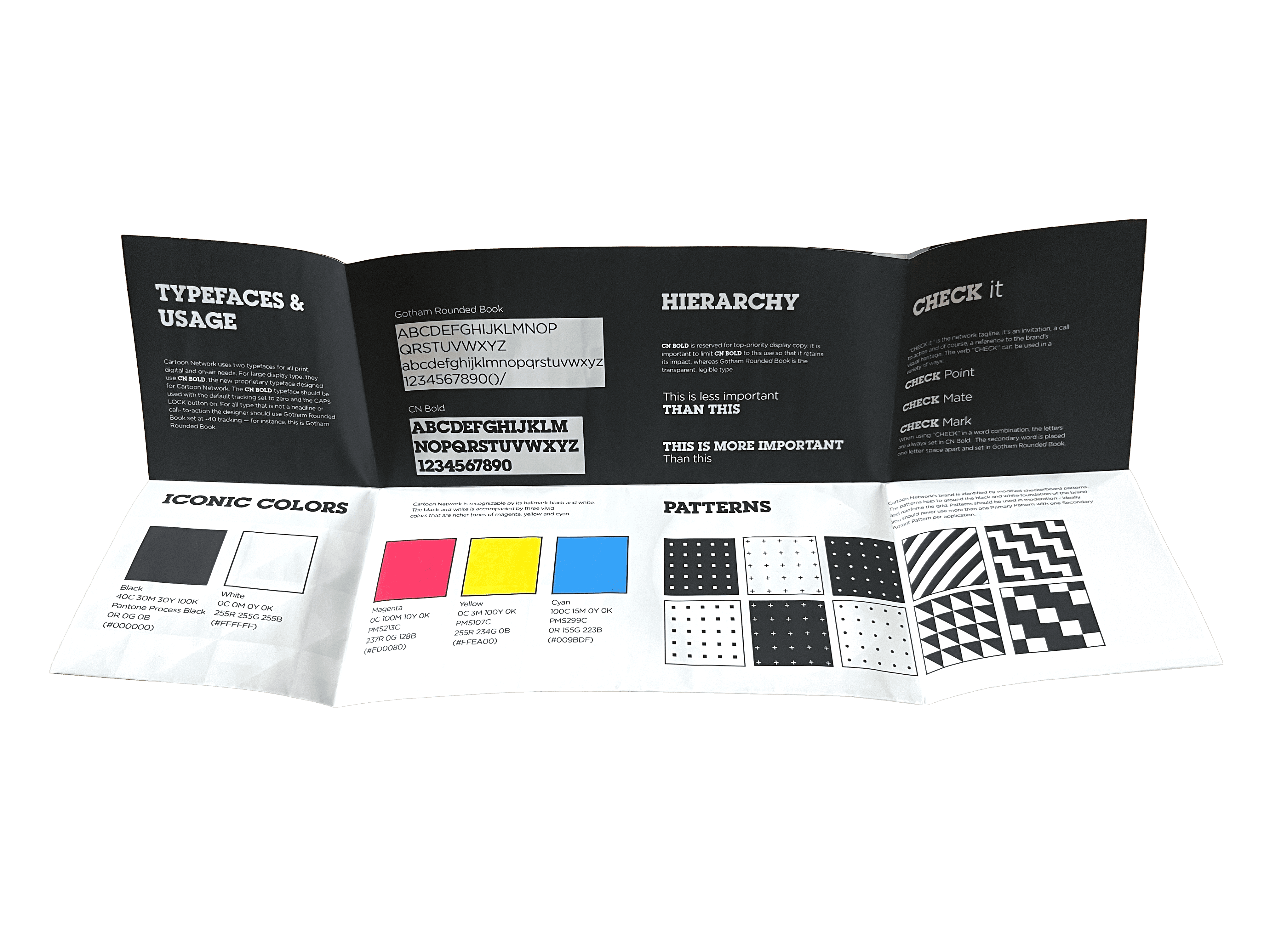 For this project, I created a brand audit pamphlet that unfolds to a poster. I chose Cartoon Network and incorporated their brand standards throughout my design. I showcased their colors, typography, logo, and patterns, the last of which I recreated by hand. I had a unique opening experience which allowed the company tagline “Check it” to be visible between the flaps.
