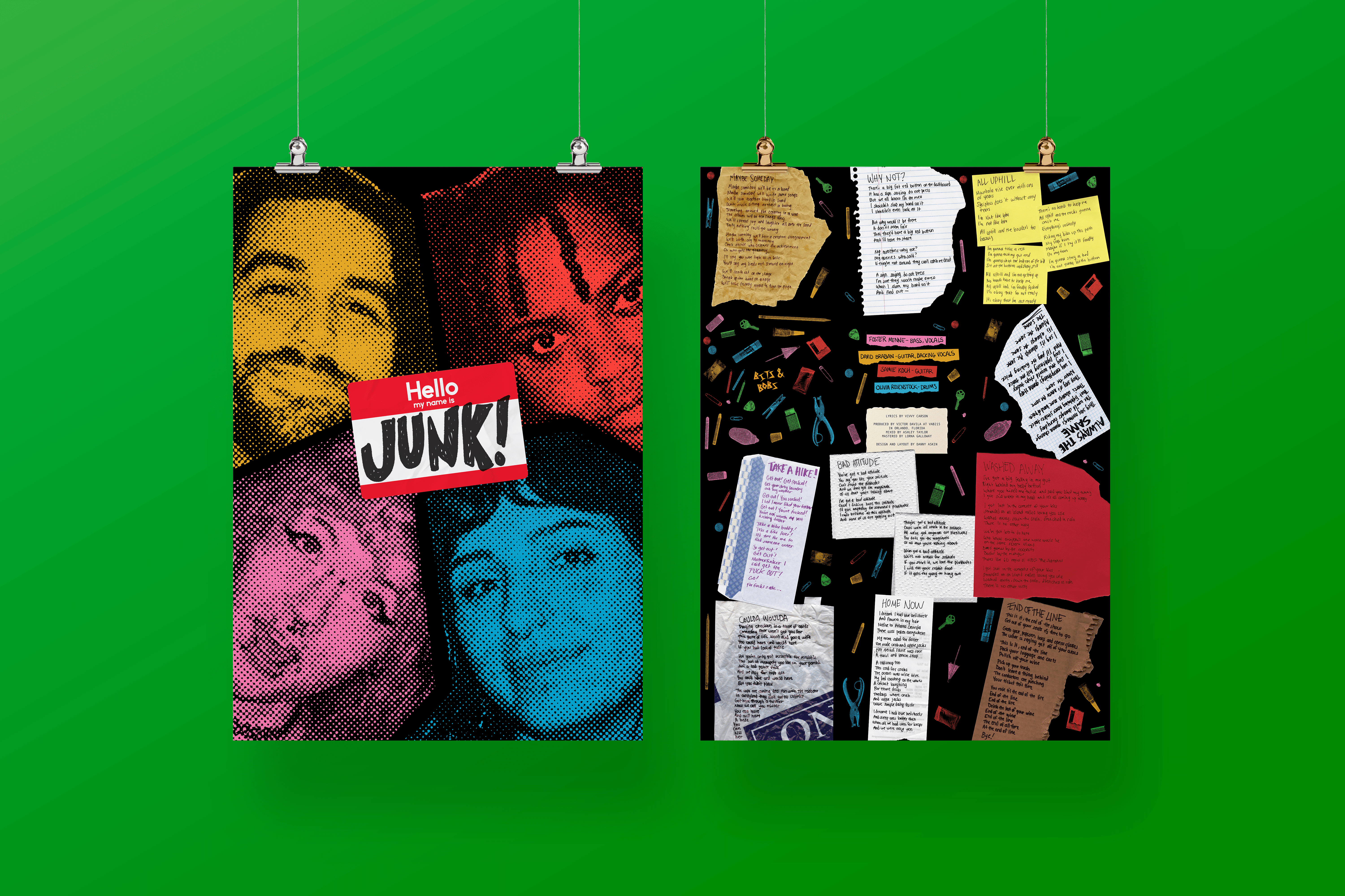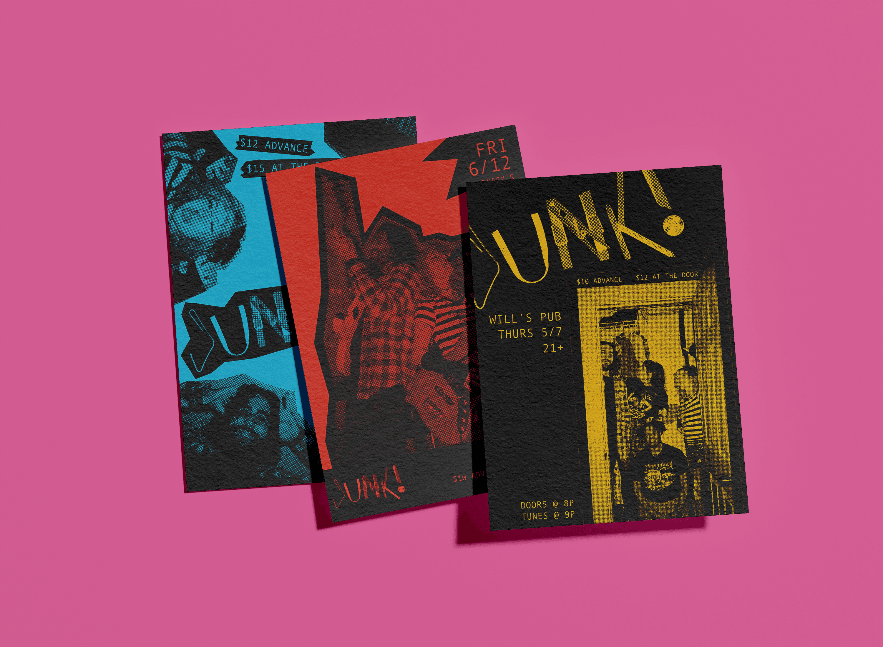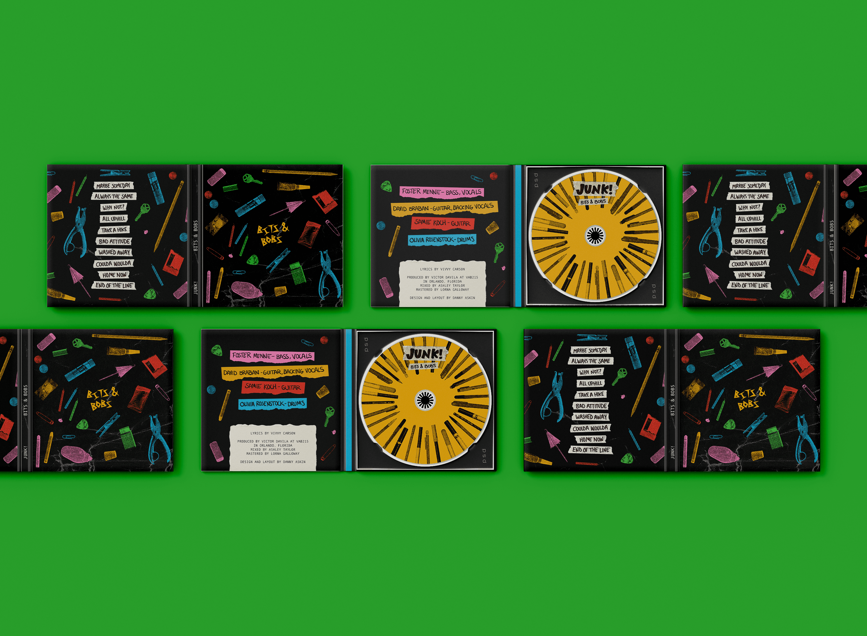 For this project, I set out to create a cohesive brand for an indie punk band, and I wanted to embody my goal of merging the tactile and the digital. Working around a theme of “junk”, I dug through my own junk drawers and created assets using whatever I could find. I used everything from clothespins, to guitar picks, to random packets of hot sauce.